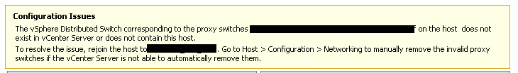 vDS operation failed on host prod.esxi.com, Received SOAP response fault from [<cs p:00000000f3627820, TCP:prod.esxi.com:443>]: invokeHostTransactionCall An error occurred during host configuration. got (vim.fault.PlatformConfigFault) exception An error occurred during host configuration.