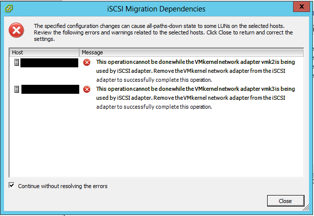 Migration of Software iSCSI VMKernels configured on dvSwitch_iSCSI_Network.